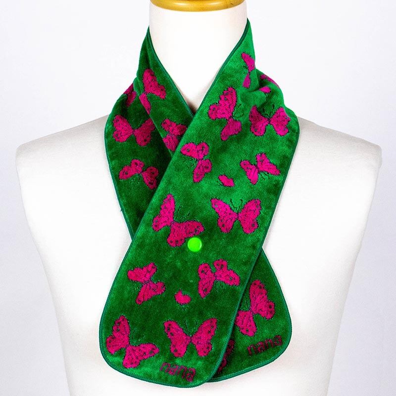 マフラー 横浜ナナ 湘南ナナ NANA ボタン付きナロータオルマフラー パピヨン グリーンピンク nn-tmf7-F