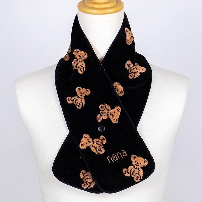 マフラー 横浜ナナ 湘南ナナ NANA ボタン付きナロータオルマフラー ナナベア柄 紺ラベンダー nn-tmf9-G
