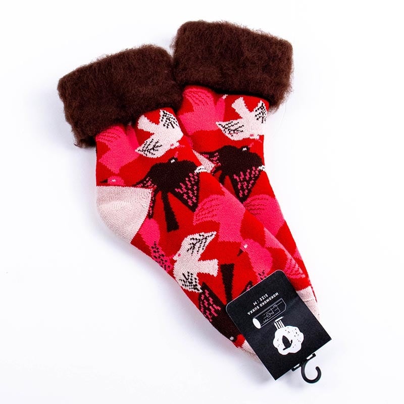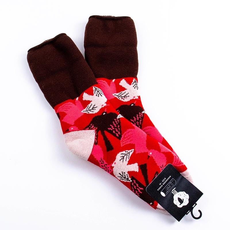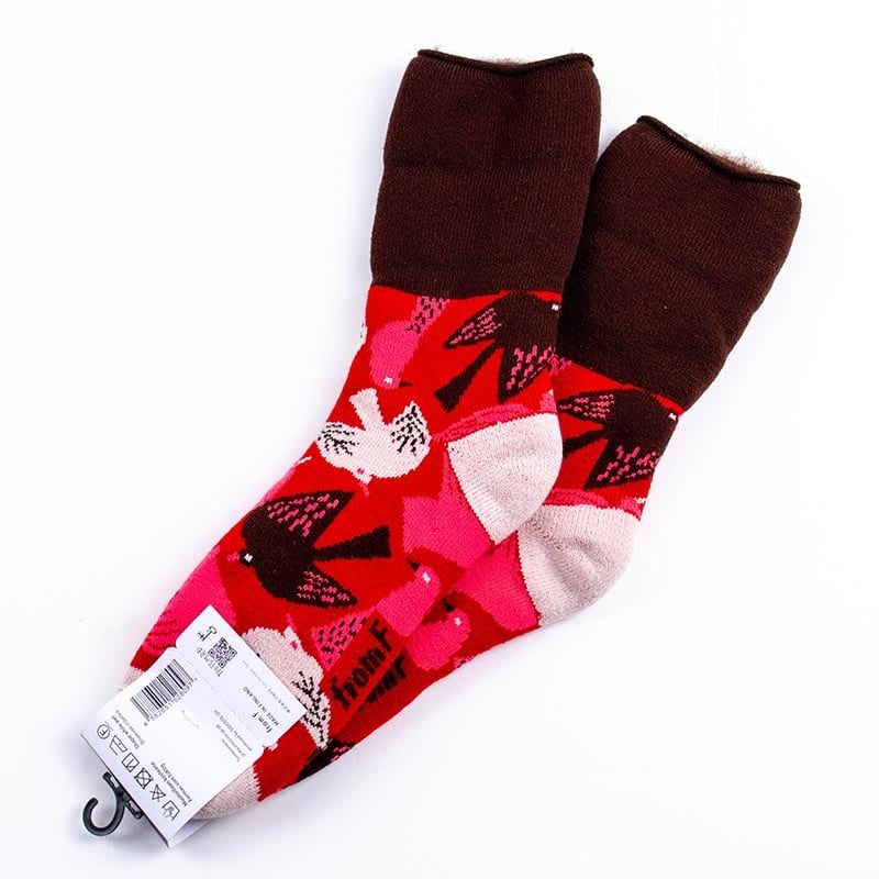 ソックス fromF モコモコソックス リントゥ/鳥 レッド サイズM 36-38 (22.5ー25cm)TV095MRD