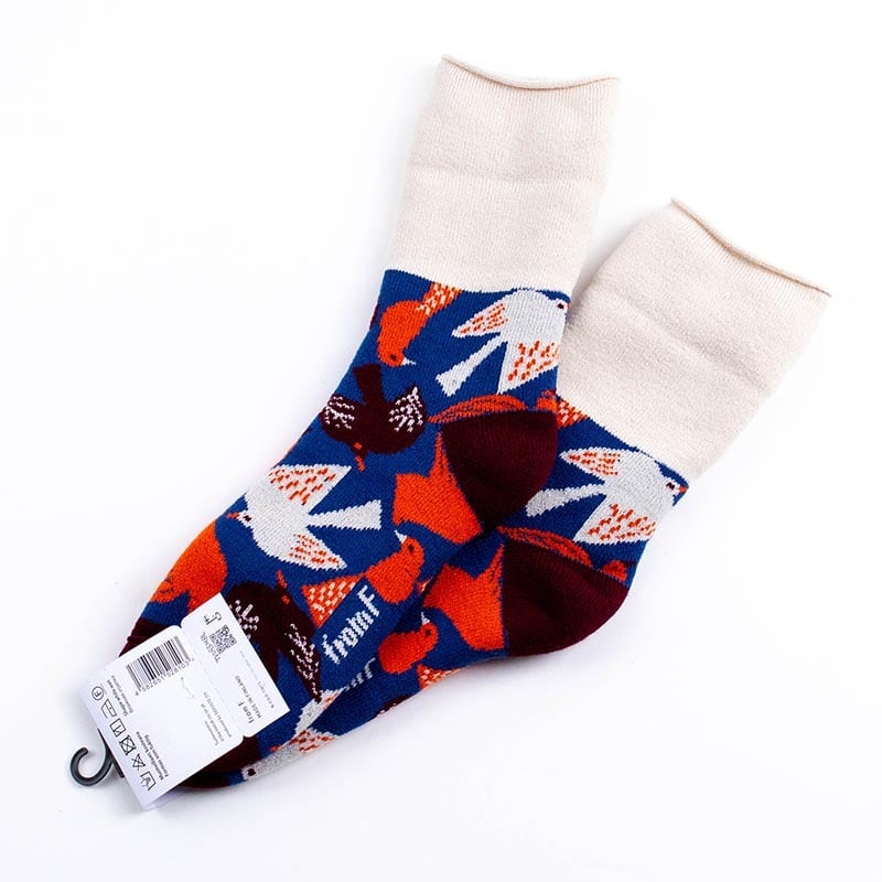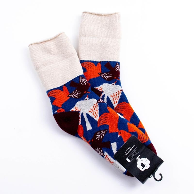 ソックス fromF モコモコソックス リントゥ/鳥 ブルー サイズM 36-38 (22.5ー25cm)TV095MBL