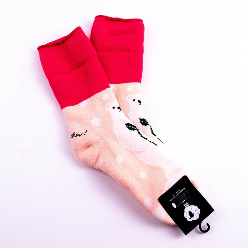 ソックス fromF モコモコソックス ヤーカルフ/しろくま サーモンピンク サイズM 36-38 (22.5ー25cm)TV096MSPK