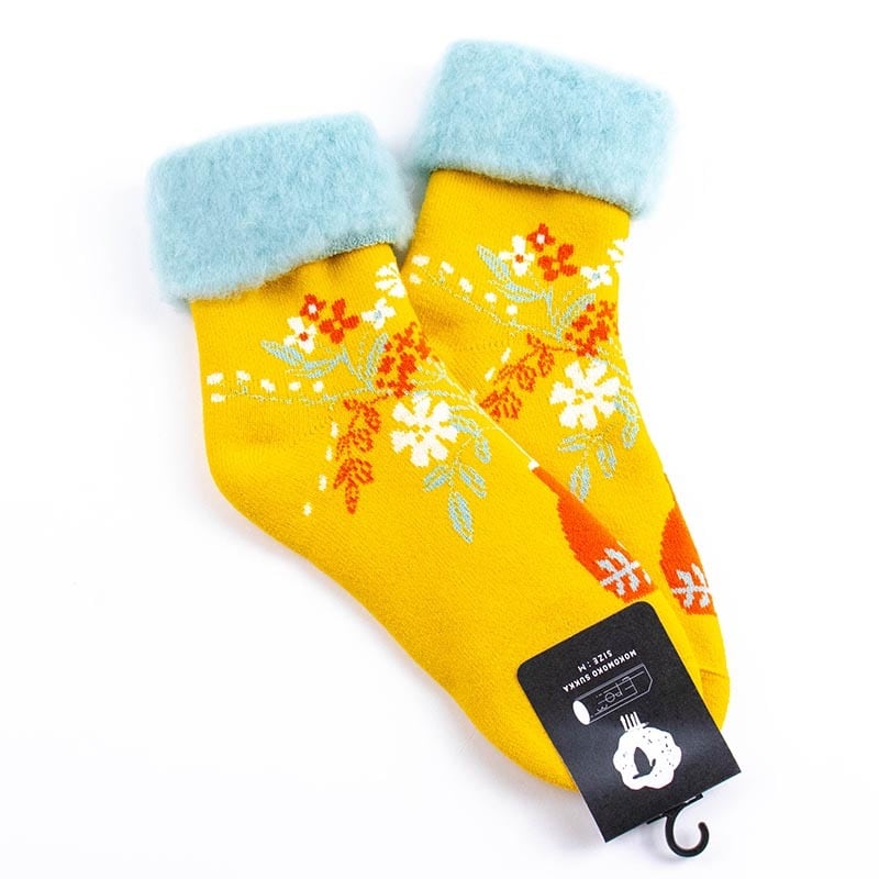 北欧フィンランド生まれモコモコソックス。寒さの厳しいフィンランドの人たちに愛用されている靴下。内側はつま先までもこもこの裏起毛で一度履いたらやみつきに。