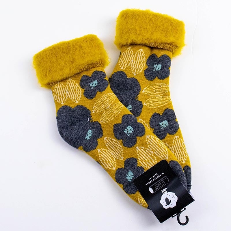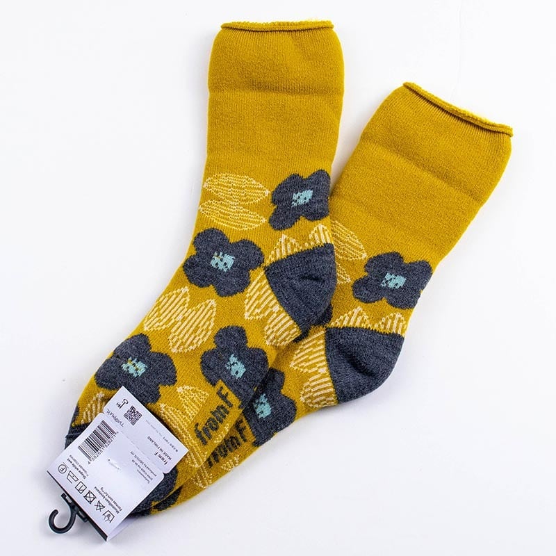 ソックス fromF モコモコソックス クッカプータラハ/花畑 アッシュイエロー サイズM 36-38 (22.5ー25cm)TV099MAYL