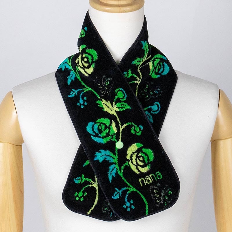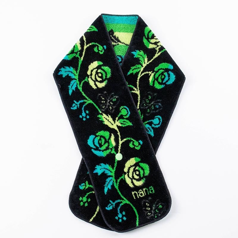 マフラー 横浜ナナ 湘南ナナ NANA ボタン付きナロータオルマフラー ローズパピヨン柄 クロ多色 nn-tmf8-G