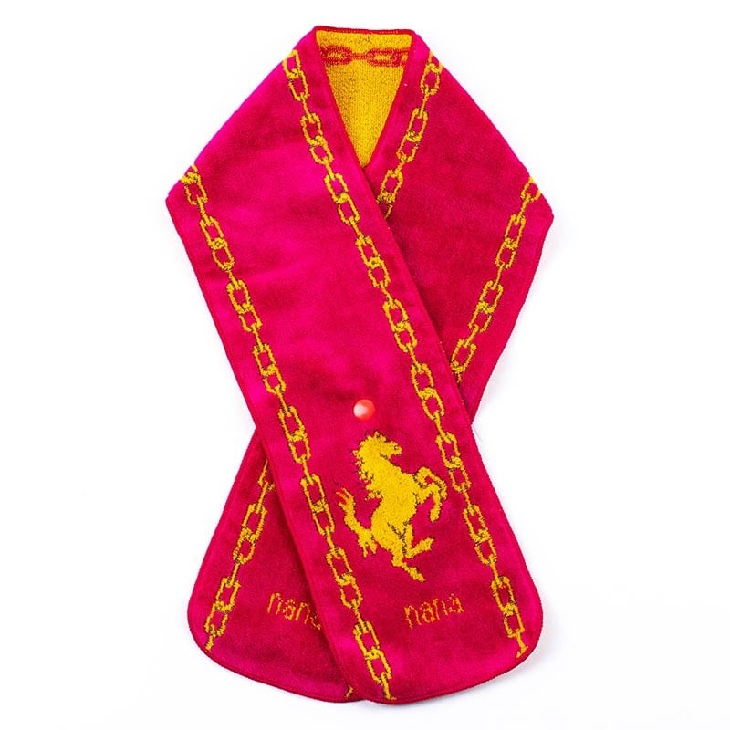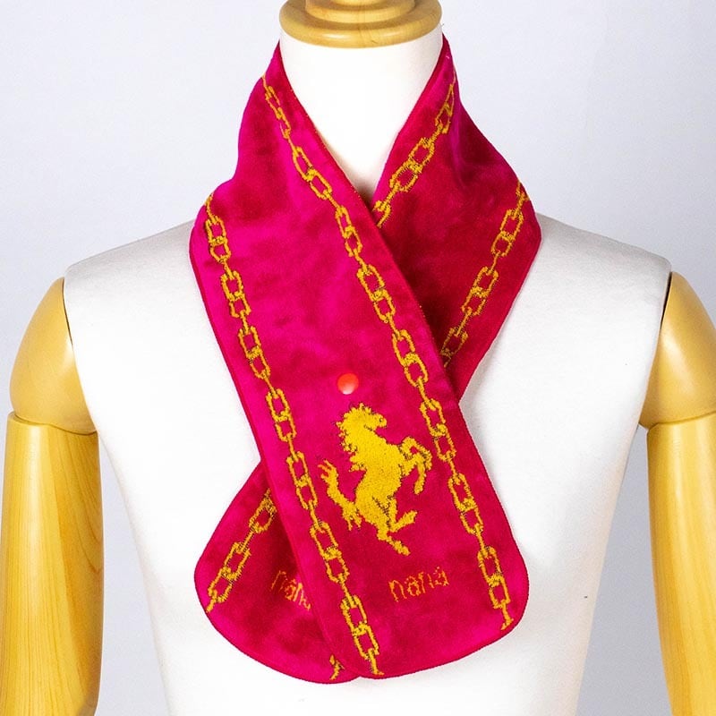 マフラー 横浜ナナ 湘南ナナ NANA ボタン付きナロータオルマフラー ホース柄 チェリーピンクイエロー nn-tmf11-A