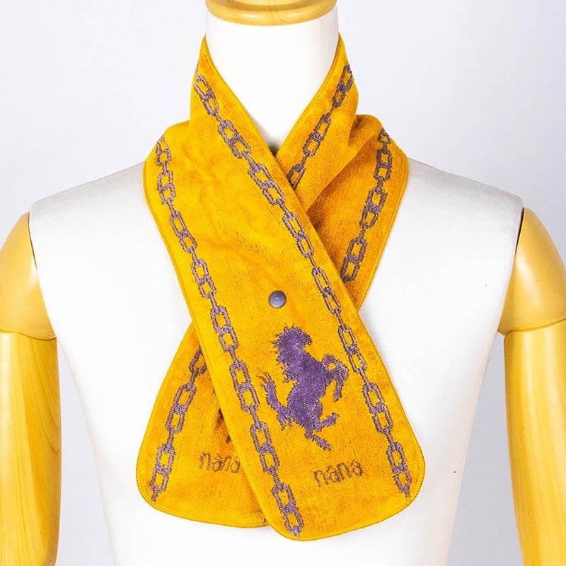 マフラー 横浜ナナ 湘南ナナ NANA ボタン付きナロータオルマフラー ホース柄 イエローグレー nn-tmf11-D