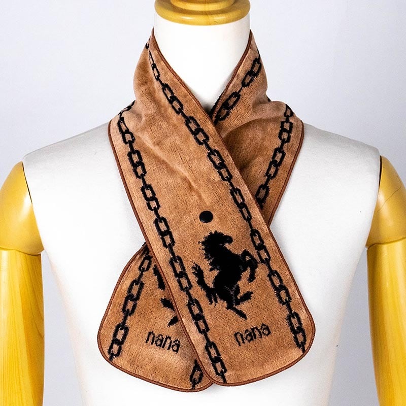 マフラー 横浜ナナ 湘南ナナ NANA ボタン付きナロータオルマフラー ホース柄 ベージュチェリークロ nn-tmf11-G