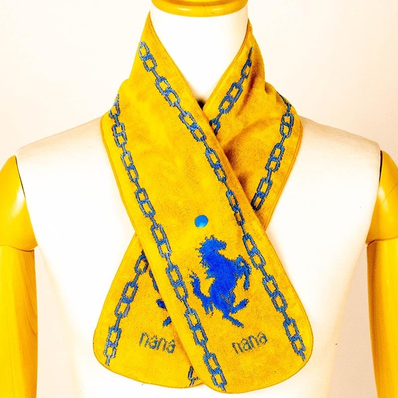 マフラー 横浜ナナ 湘南ナナ NANA ボタン付きナロータオルマフラー ホース柄 イエローブルー nn-tmf11-H