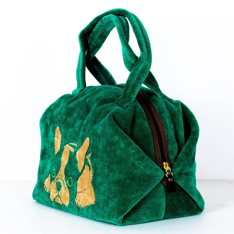 バッグ 横浜ナナ NANA ボストンバッグ フレンチブルドッグ柄 グリーンベージュ nn-btm3-F
