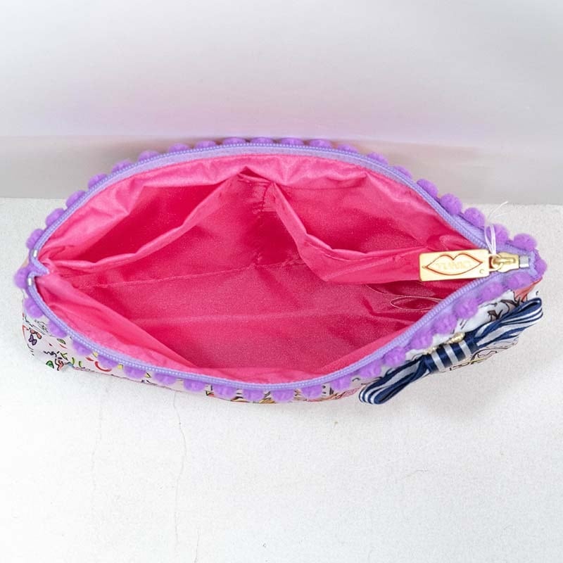 ポーチ TUNIC タフタプリント スマイルプレゼントのヒールポーチ 白/ピンク 17336-A