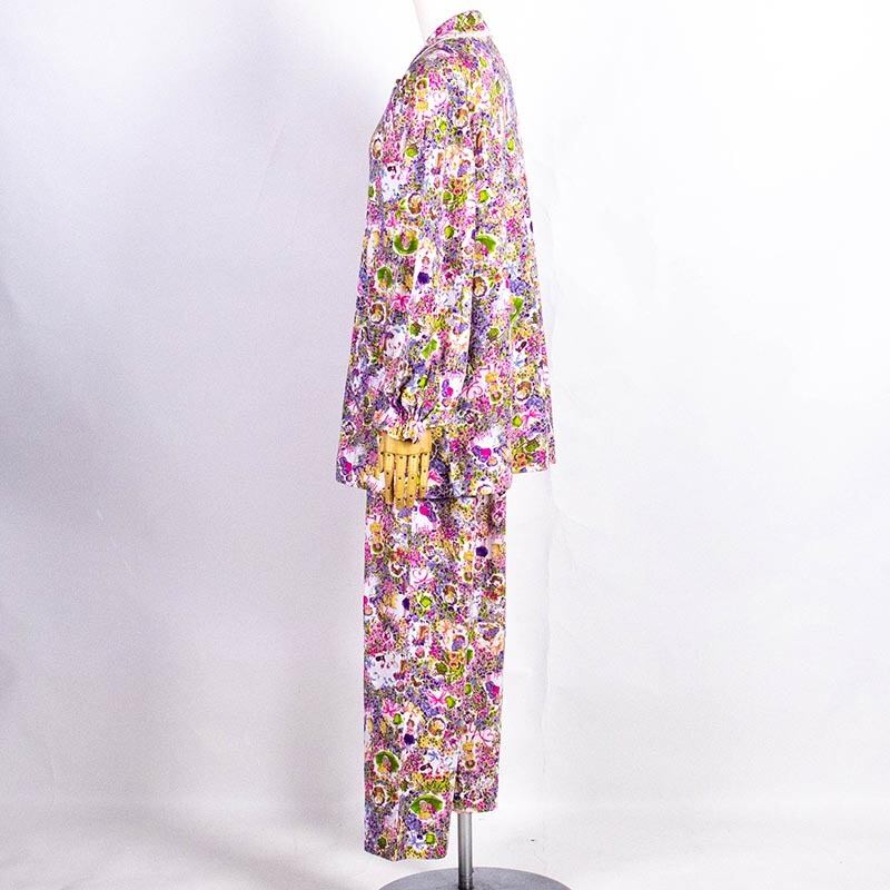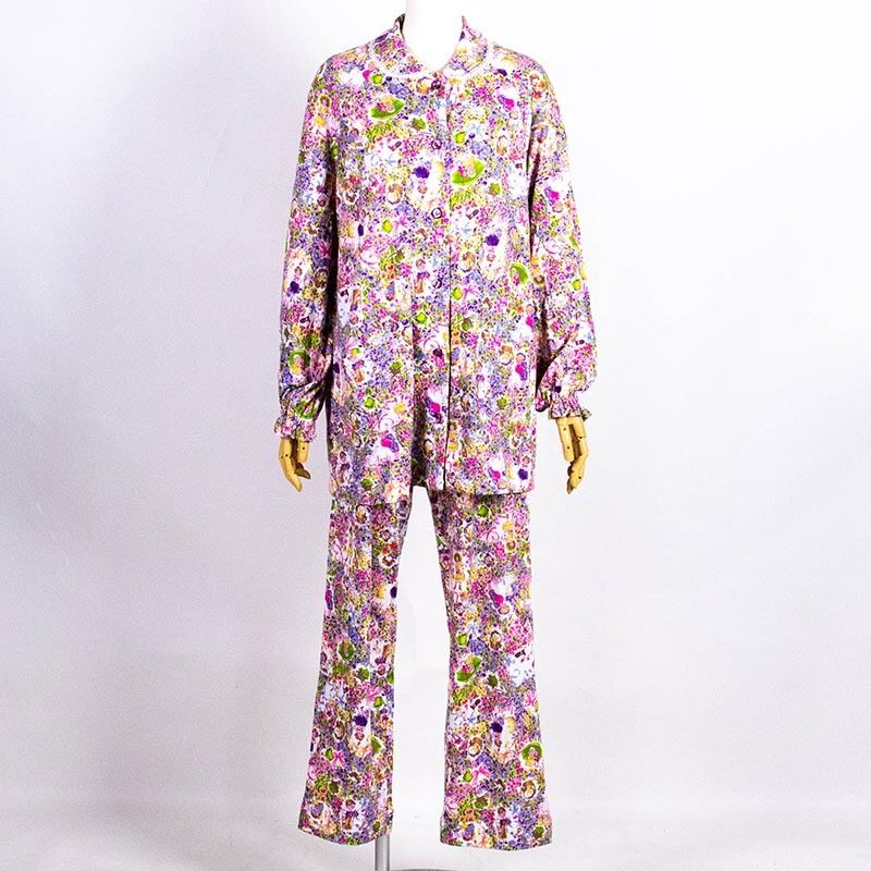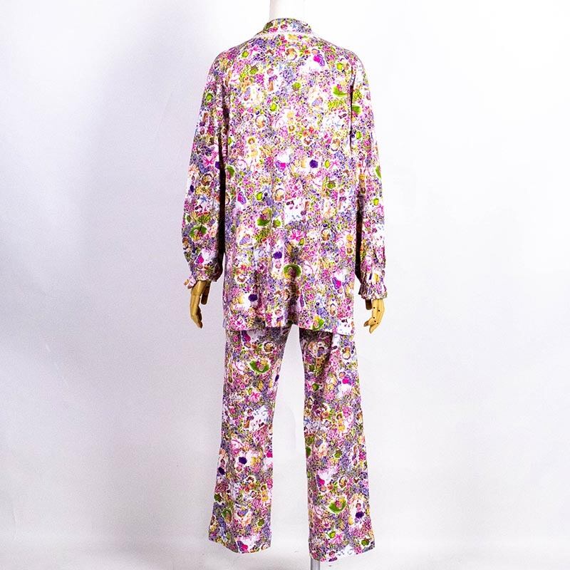 チュニックの60接結・小花メルヘン 襟付全開パジャマ パープル フリーサイズです。