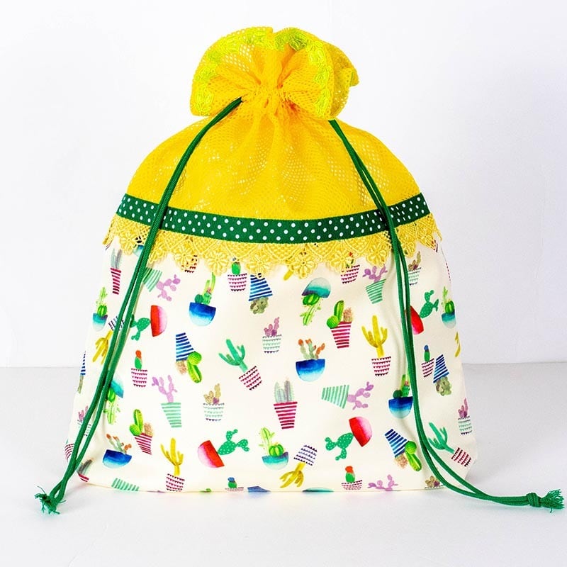 チュニックのタフタ転写プリント+綿プリント サボテンハートのヒール巾着 サボテン です。